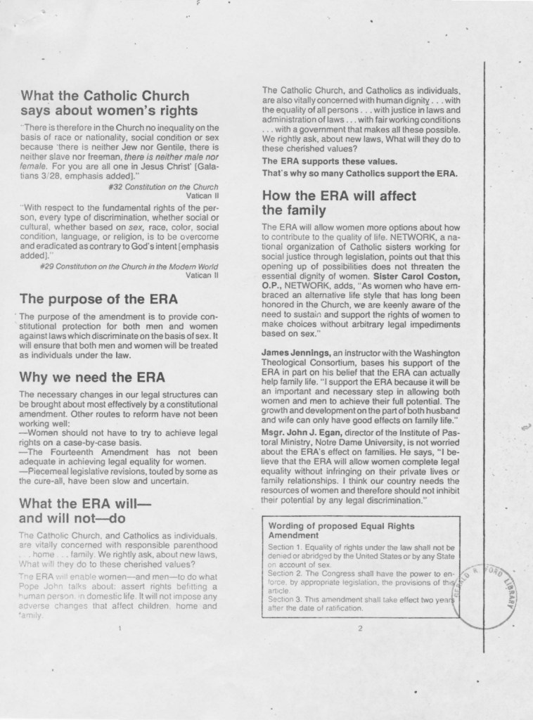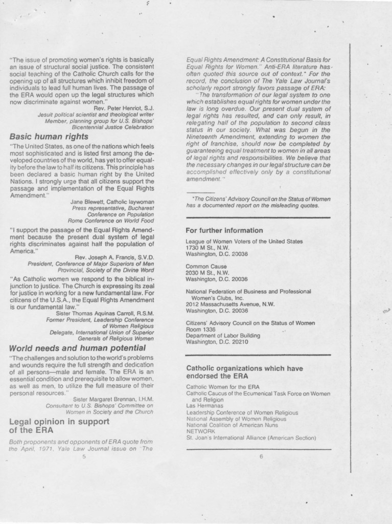 Catholics and the Equal Rights Amendment pamphlet