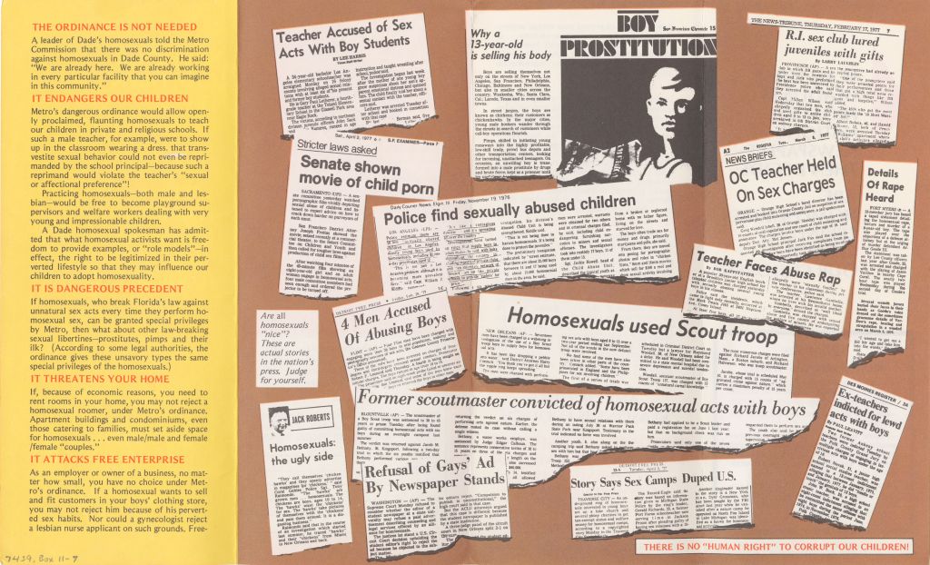 A pamphlet produced by Anita Bryant’s “Save Our Children” campaign, which opposed the passage of gay rights legislation.