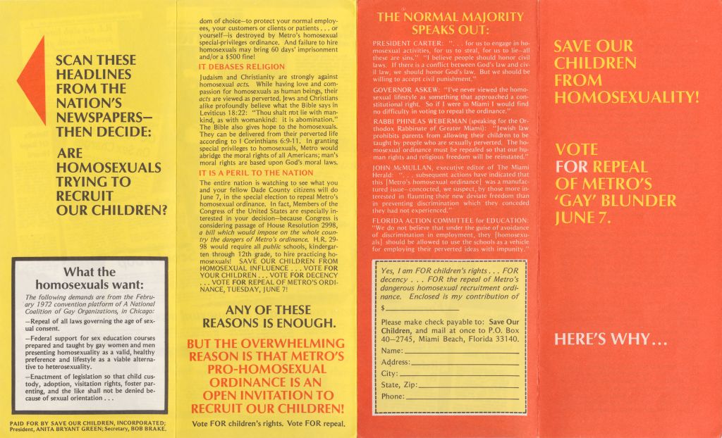 Save Our Children From Homosexuality pamphlet, 1977